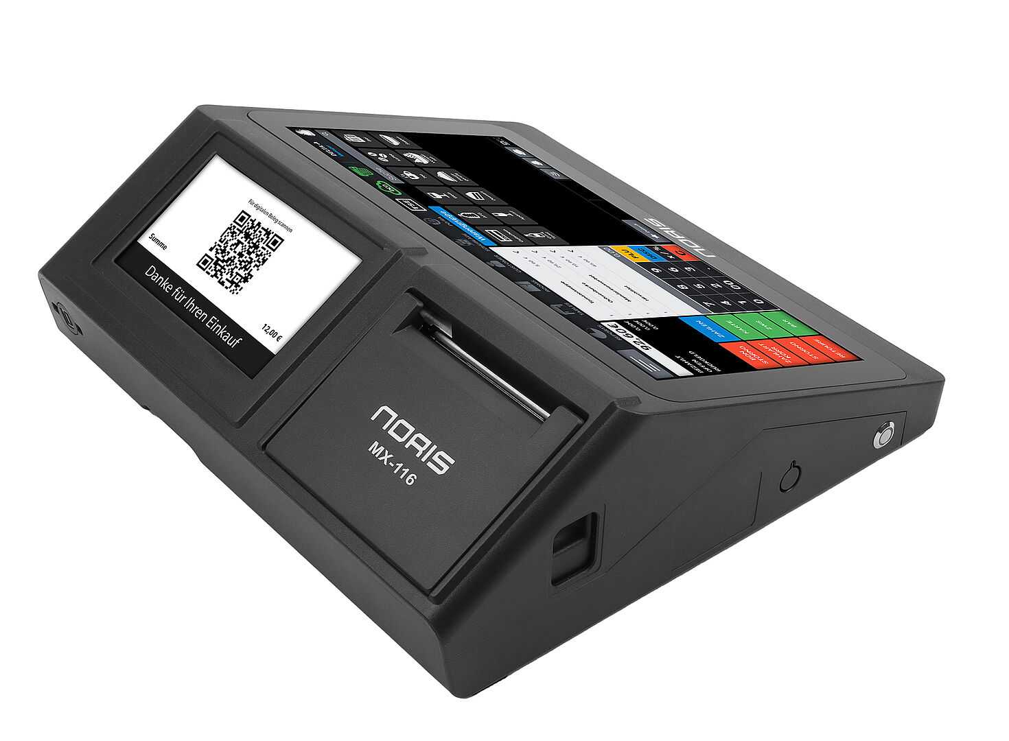 Die Noris All-In-One-Touch-Kassen der M-Linie umfasst zwei Modelle. Eins davon ist die MX-116, die für umfangreichere Aufgaben des Einzehandels und der Gatronomie bestens geeignet ist und mit einem farbigen Kunden-Display punktet.